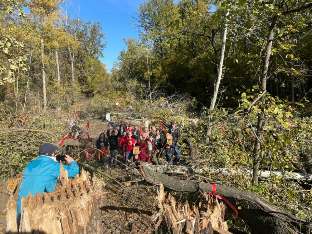 Как стало известно "Кривому-зеркалу", 9 октября экоактивисты совместно с депутатом Волгоградской областной Думы Александром Осиповым собрались в Волго-Ахтубинской пойме, устроив акцию в защиту природного парка. Противники уничтожения леса разместили картинки с краснокнижными птицами на пнях снесенных дубов, а ветви спиленных деревьев украсили яркими лентами.