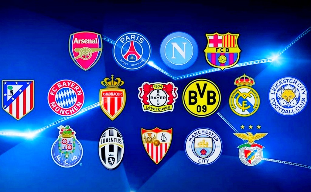 В плей-офф Лиги чемпионов вышли: «Арсенал» (Англия), «Пари Сен-Жермен» (Франция), «Наполи» (Италия), «Бенфика» (Португалия), «Барселона» (Испания), «Манчестер Сити» (Англия), «Атлетико» (Испания), «Бавария» (Германия), «Монако» (Франция), «Байер» (Германия), «Боруссия» (Дортмунд, Германия), «Реал» (Испания), «Лестер Сити» (Англия), «Порту» (Португалия), «Ювентус» (Италия), «Севилья» (Испания).