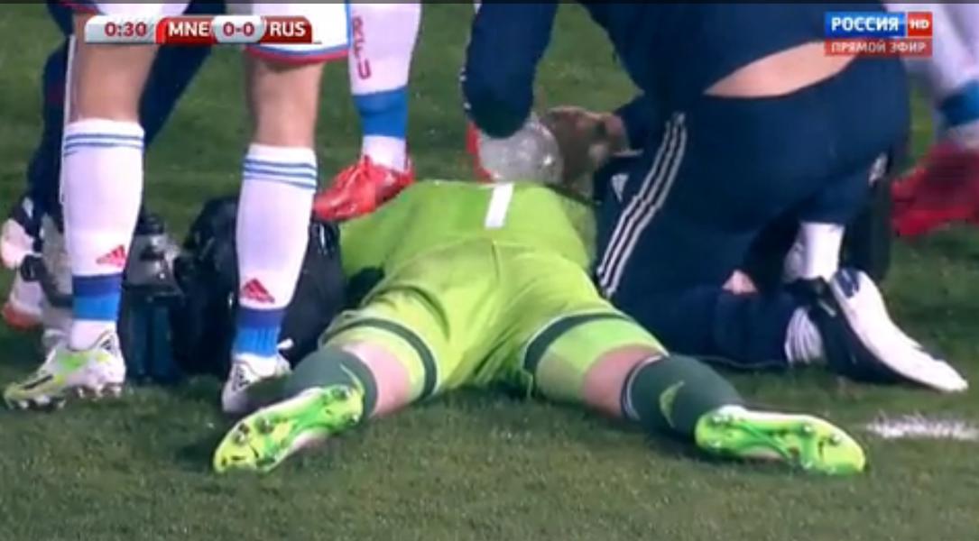 Как сообщило сразу после матча информационное агентство ИТАР ТАСС, черногорский болельщик-вандал, бросивший файер в голкипера сборной России Игоря Акинфеева, арестован полицией.