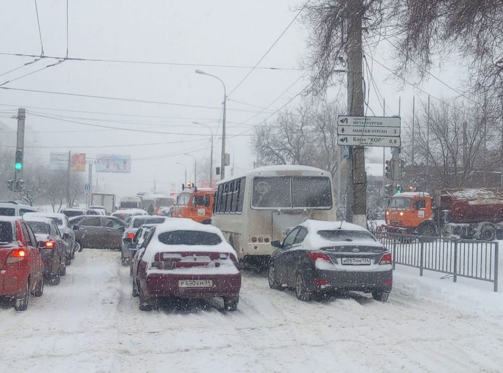 Из-за снегопада Волгоград встал в 10-балльных пробках