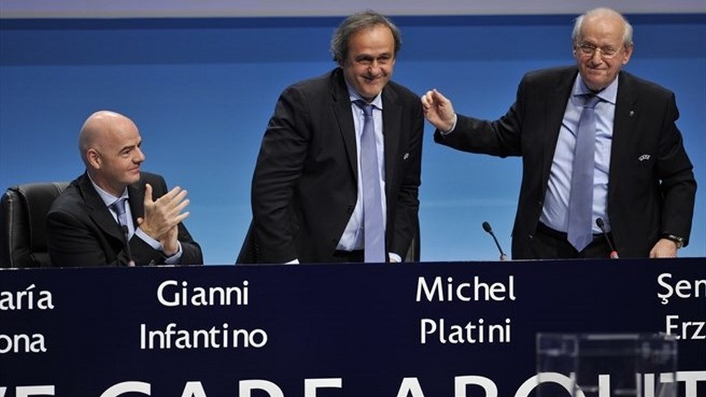 Все 54 делегата единогласно проголосовали за переизбрание действующего президента, француза Мишеля Платини (на фото в центре). В декабре 2014 года закончился срок подачи кандидатских заявок на пост президента. Мишель Платини оказался единственным кандидатом. Знаменитый француз возглавляет УЕФА с 2007 года, новый срок у него будет третьим подряд, и продлиться до 2019 года.