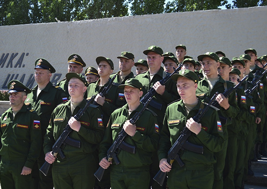 После месяца прохождения курса общевойсковой подготовки, получения начальных знаний по огневой, медицинской, физической подготовке, более 200 новобранцев соединения ЮВО в Волгограде приняли Военную присягу на Мамаевом кургане.