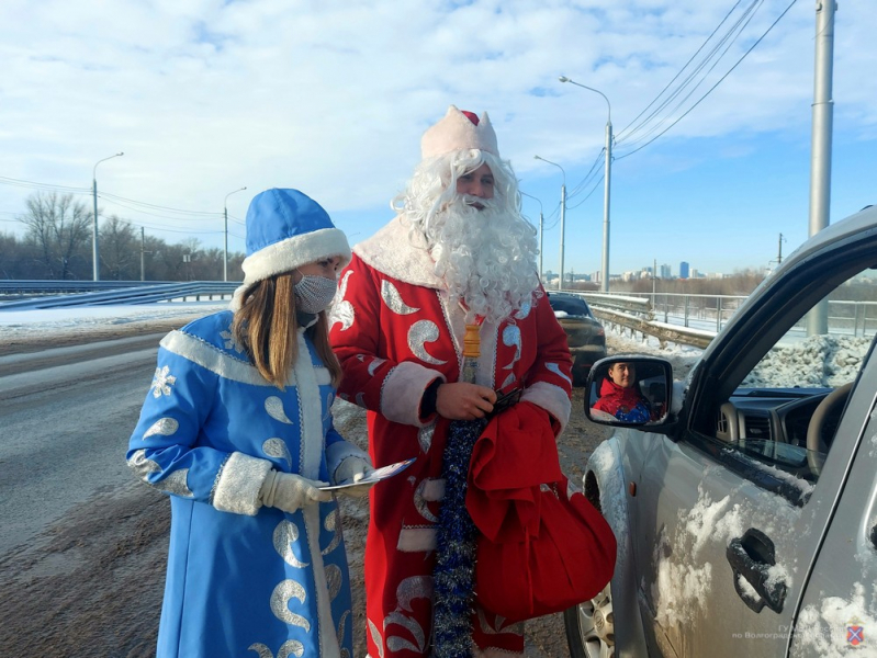 На волгоградскую дорогу вышли полицейские Дед Мороз и Снегурочка - поздравить и предстеречь