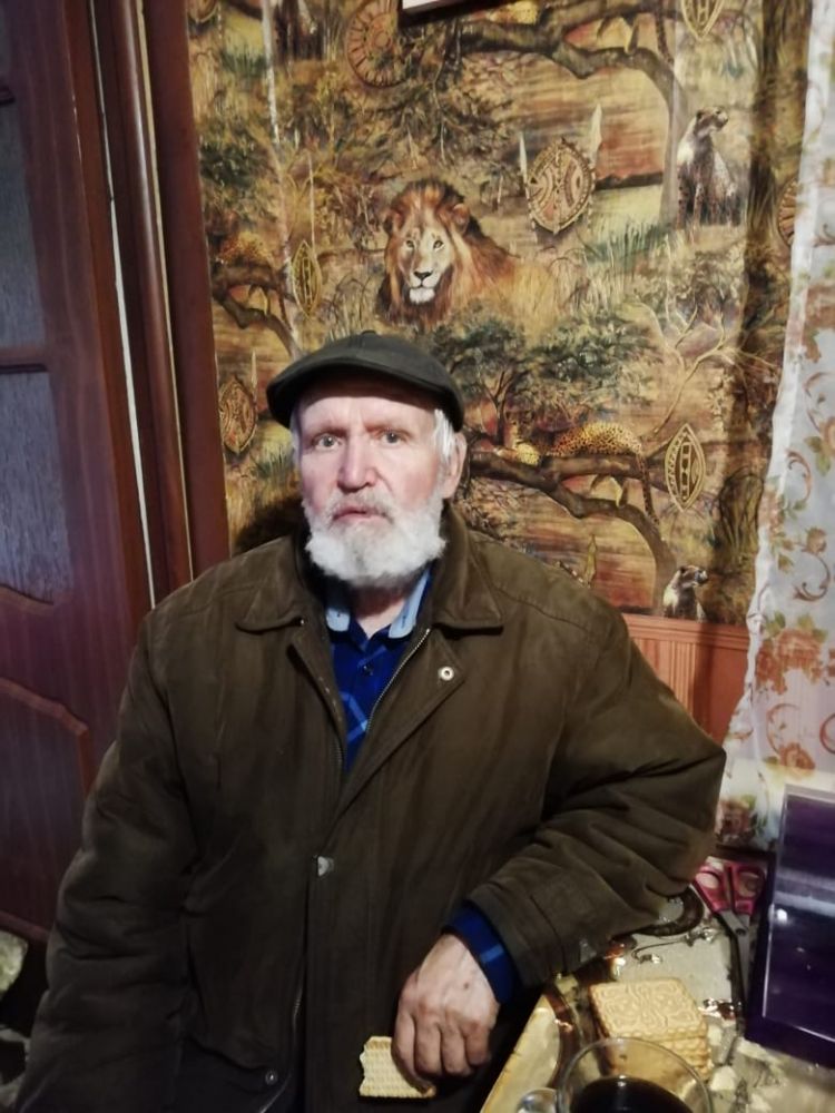 В день исчезновения был одет: коричневая замшевая куртка без капюшона, синяя фланелевая рубашка в клетку с длинным рукавом, тёмно-серые спортивные штаны, темно-серые галоши с мехом, серая кепка.