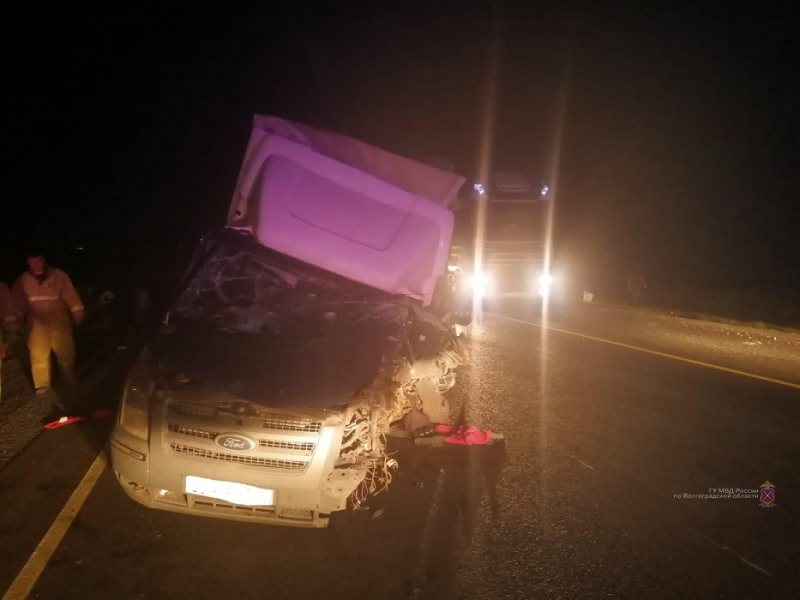В 23:25 40-летний водитель фургона «Форд Транзит» ехал по трассе Р-22 Каспий в сторону Волгограда и на 869 км не справился с управлением. Фургон выехал на полосу встречного движения и столкнулся с «КамАЗом», за рулем которого находился 57-летний житель Республики Дагестан.