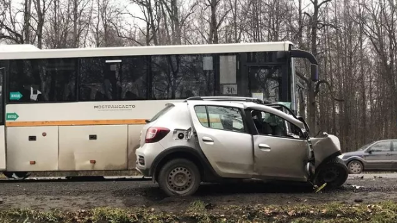 Два человека погибли, еще двое, в том числе беременная женщина, пострадали при столкновении легкового автомобиля с рейсовым автобусов в Подмосковье.