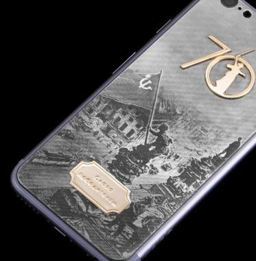 К 70-летнему юбилею Победы в Великой Отечественной войне ювелирный бренд Caviar презентовал новые эксклюзивные телефоны. Серия лимитирована: будут выпущены всего 70 аппаратов на базе Android и столько же в версии iOS. Титановый корпус телефона украшен гравировкой, изображающей известное фото «Знамя Победы над Рейхстагом». Но главная изюминка – золотой знак в виде скульптуры «Родина-мать зовет», а также золотая табличка «Слава победителям». Причем надпись сделана по-русски.