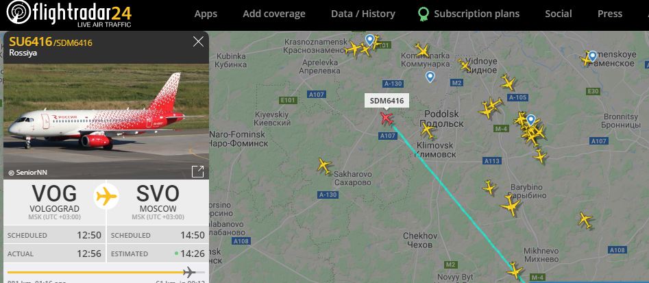Как сообщает ИА «СоцИнформБюро», согласно данным портала Flight Radar, борт Sukhoi Superjet 100-95B авиакомпании «Россия», летящий до московского Шереметьево, в субботу днем, 21 августа, подал основной аварийный код 7700. Это означает, что на борту самолета возникла аварийная ситуация.
