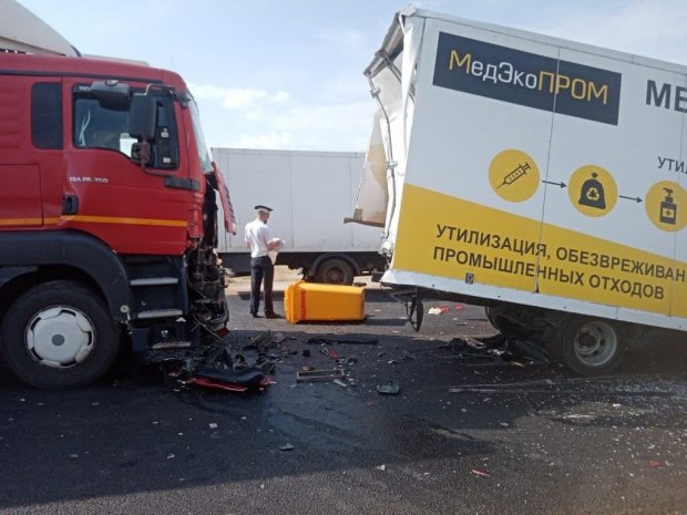 По предварительным данным, водитель грузовика «МАН» протаранил по цепочке четыре машины, которые остановились перед красным сигналом светофора.