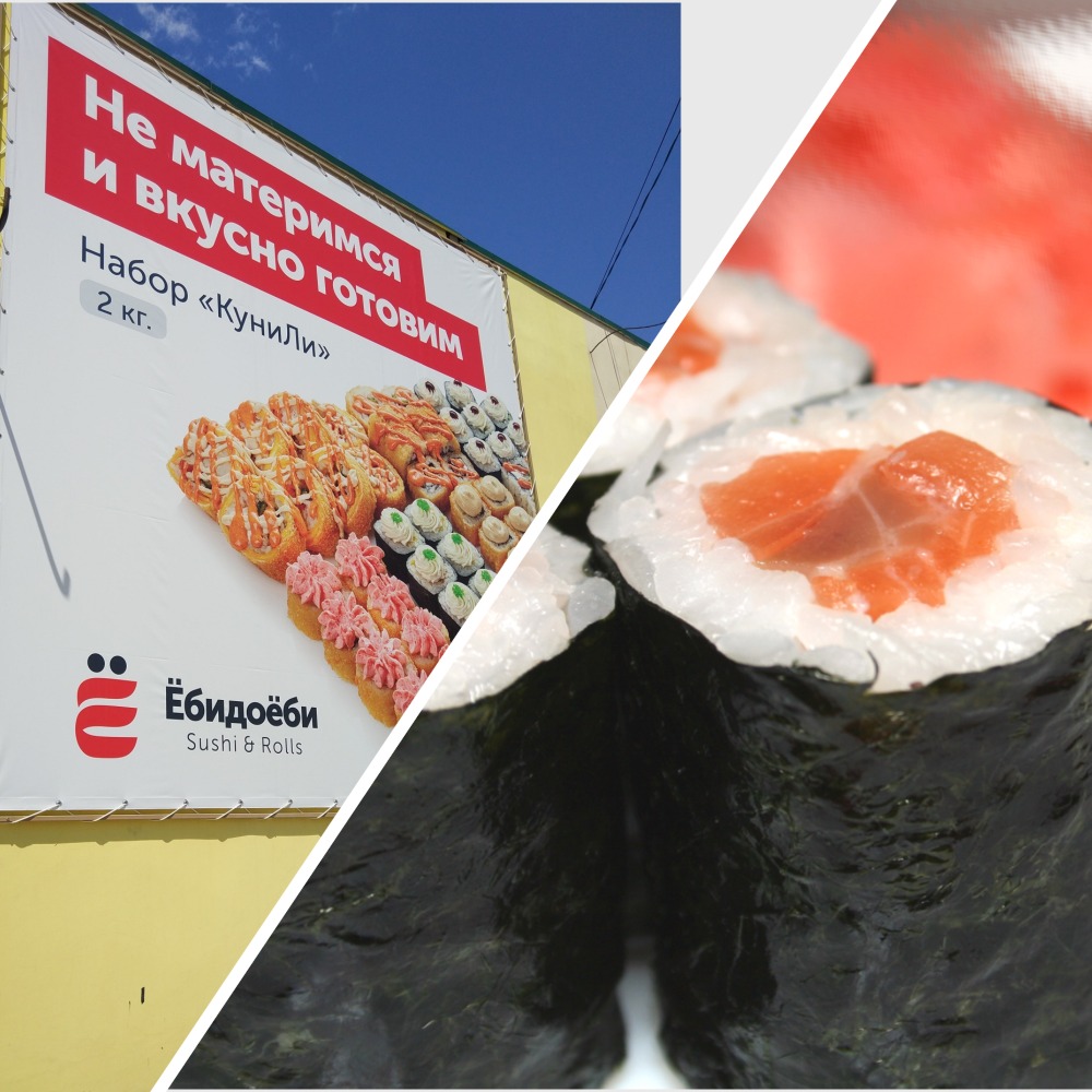 Как сообщили "Кривому-зеркалу", красноярская сеть суши-баров «ЁбиДоЁби» , известная с 2016 года своим агрессивным маркетингом, совсем недавно пришла в Волгоград и этим летом открыла в городе 2 заведения, одно из которых расположено вблизи школы и детских садов. При этом размещенная реклама, которая и на данный момент доступна несовершеннолетним, выглядит так: «Не материмся и вкусно готовим. Набор «КуниЛи» 2 кг. ЁбиДоёБи Sushi &Rolls», а также изображение товарного знака «Ё».