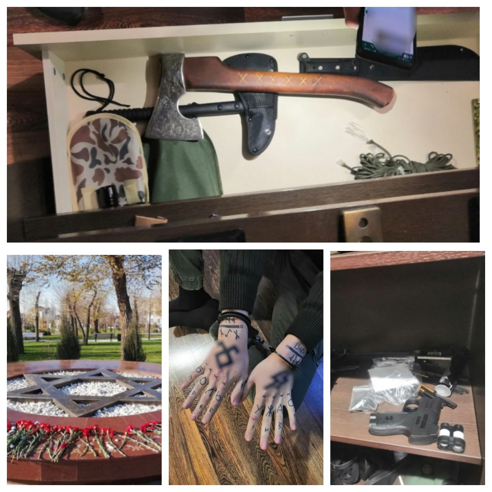 В его квартире обнаружены атрибутика и блокноты с записями экстремистского характера. В содеянном он сознался. Полицейские также установили, что задержанный причастен к совершению двух разбойных нападений в Волгограде. Он ограбил продуктовый магазин и ломбард, в одном из случаев в качестве оружия он использовал арбалет.