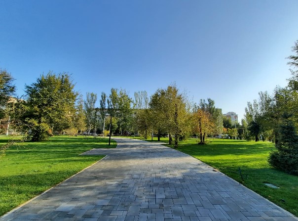 Продолжается мощение тротуарной плитки общей площадью свыше 6,5 тысяч квадратных метров. Комфортные прогулки по дорожкам сквера в темное время суток обеспечат порядка 100 светодиодных светильников.
