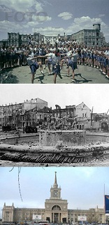 «Нам осталось пройти до Волги всего один километр, но мы никак не можем его пройти. Мы воюем за этот километр дольше, чем за всю Францию, но русские стоят, словно каменные глыбы» - так писали 70 лет назад те, кто от этого фонтана отсчитывал расстояние до Великой реки, те, кто пришел в наш город с мечом.